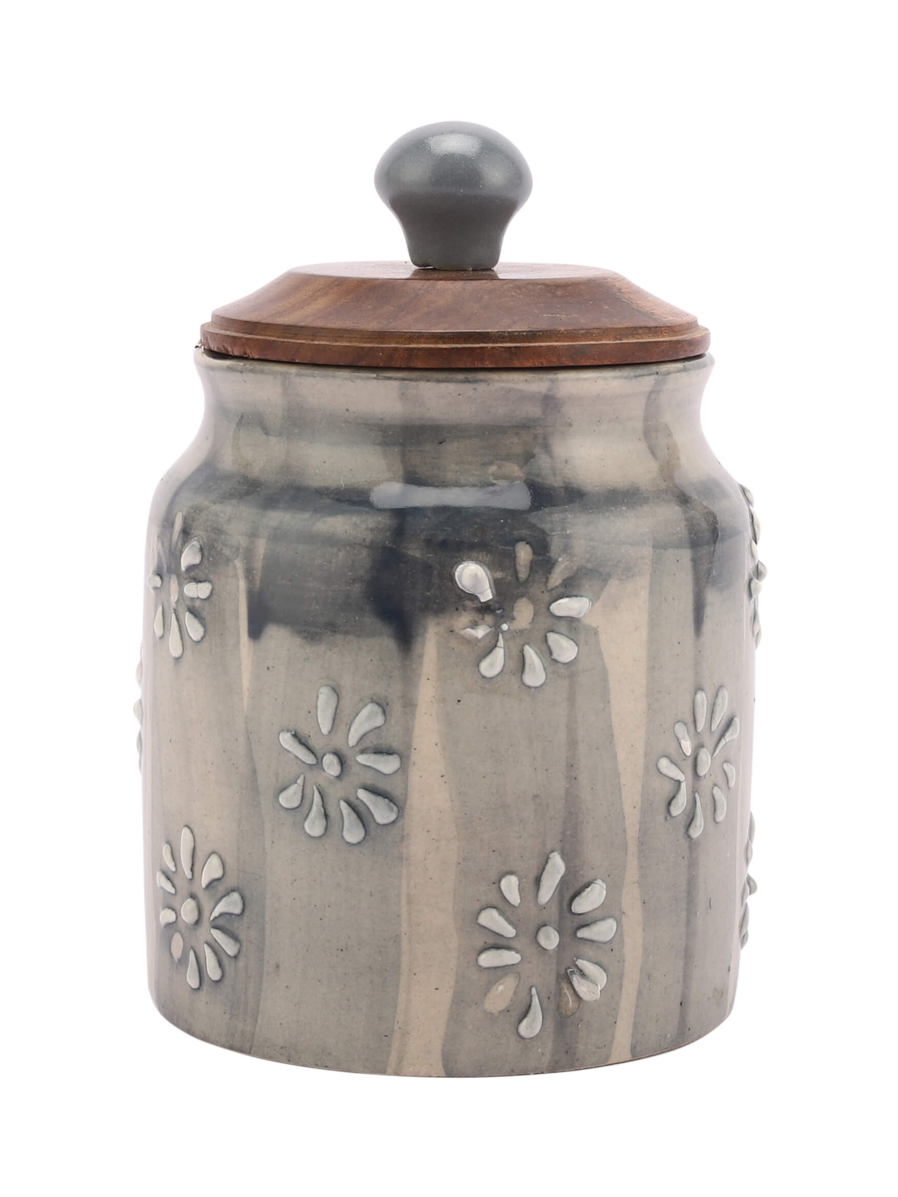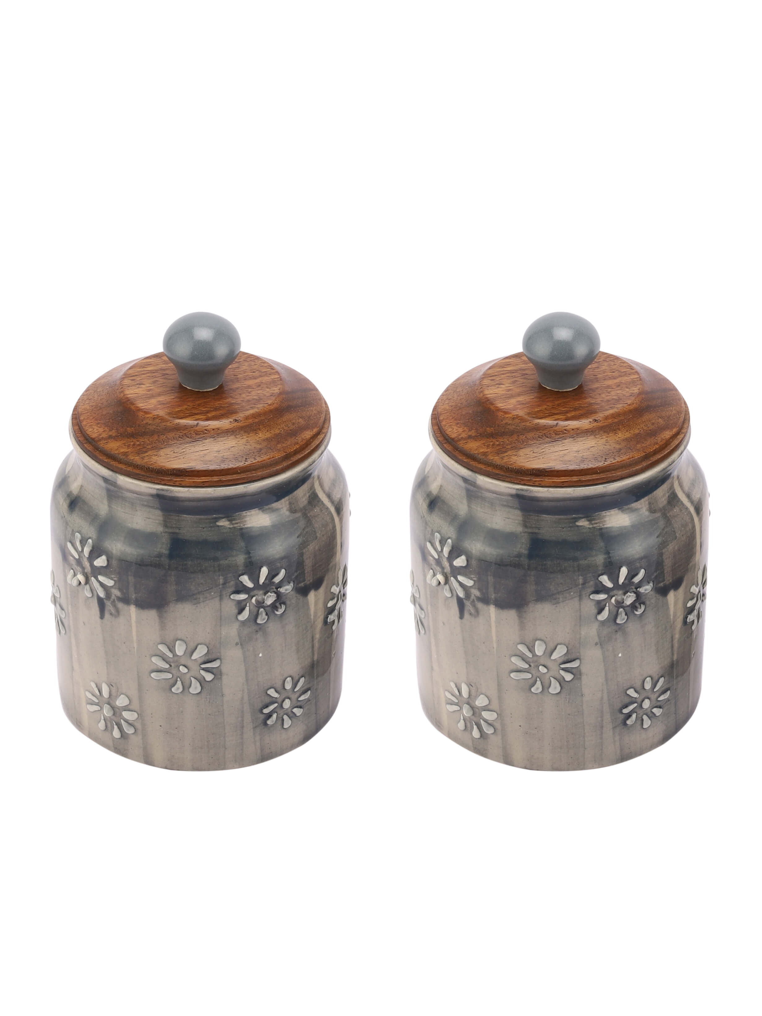This set of 2 grey ceramic jars (500ml each) is ideal for organized kitchen storage. With airtight wooden lids and a sleek hand-glazed finish, they’re great for storing tea, coffee, or dry snacks. Both microwave and freezer safe.