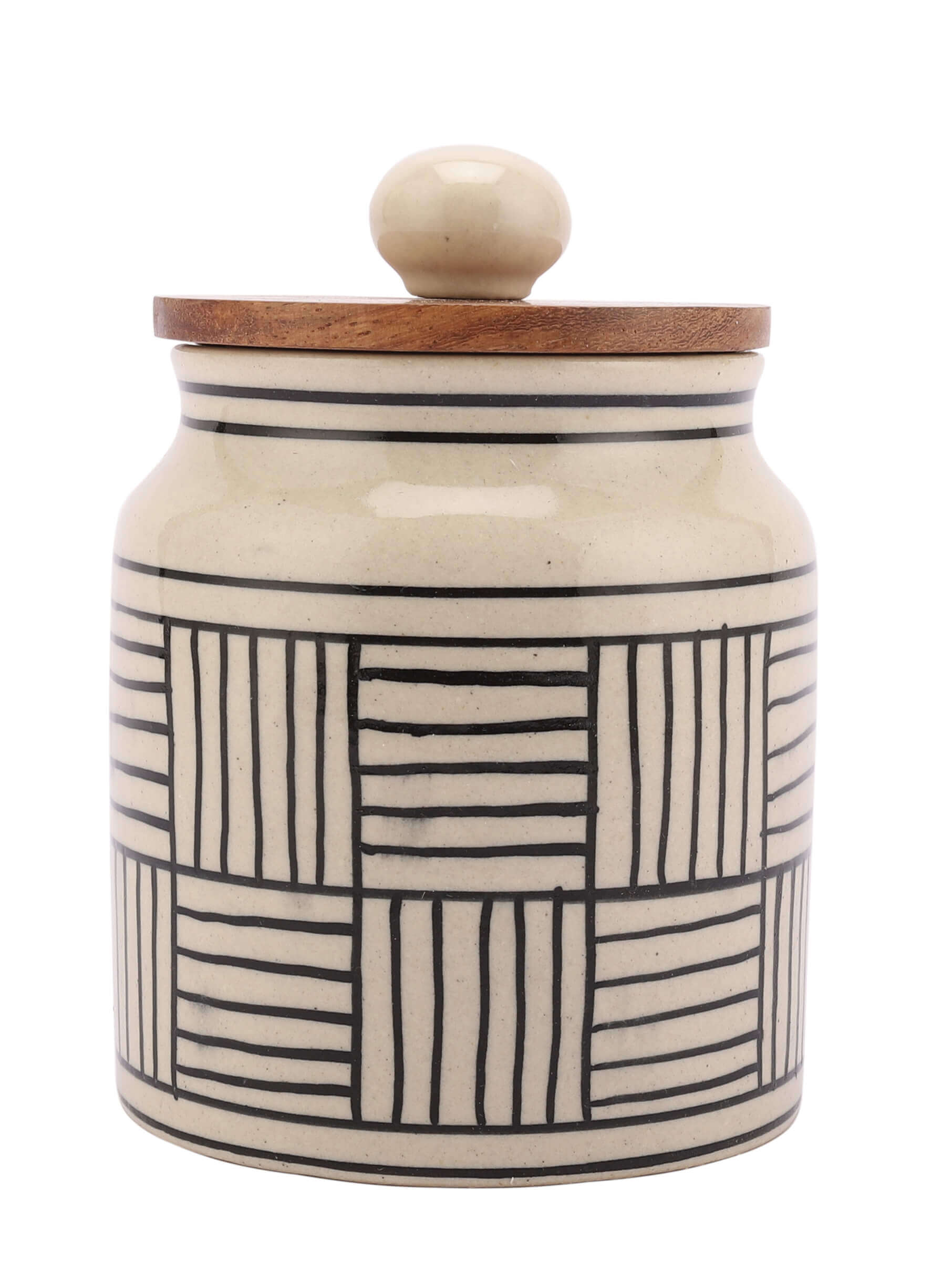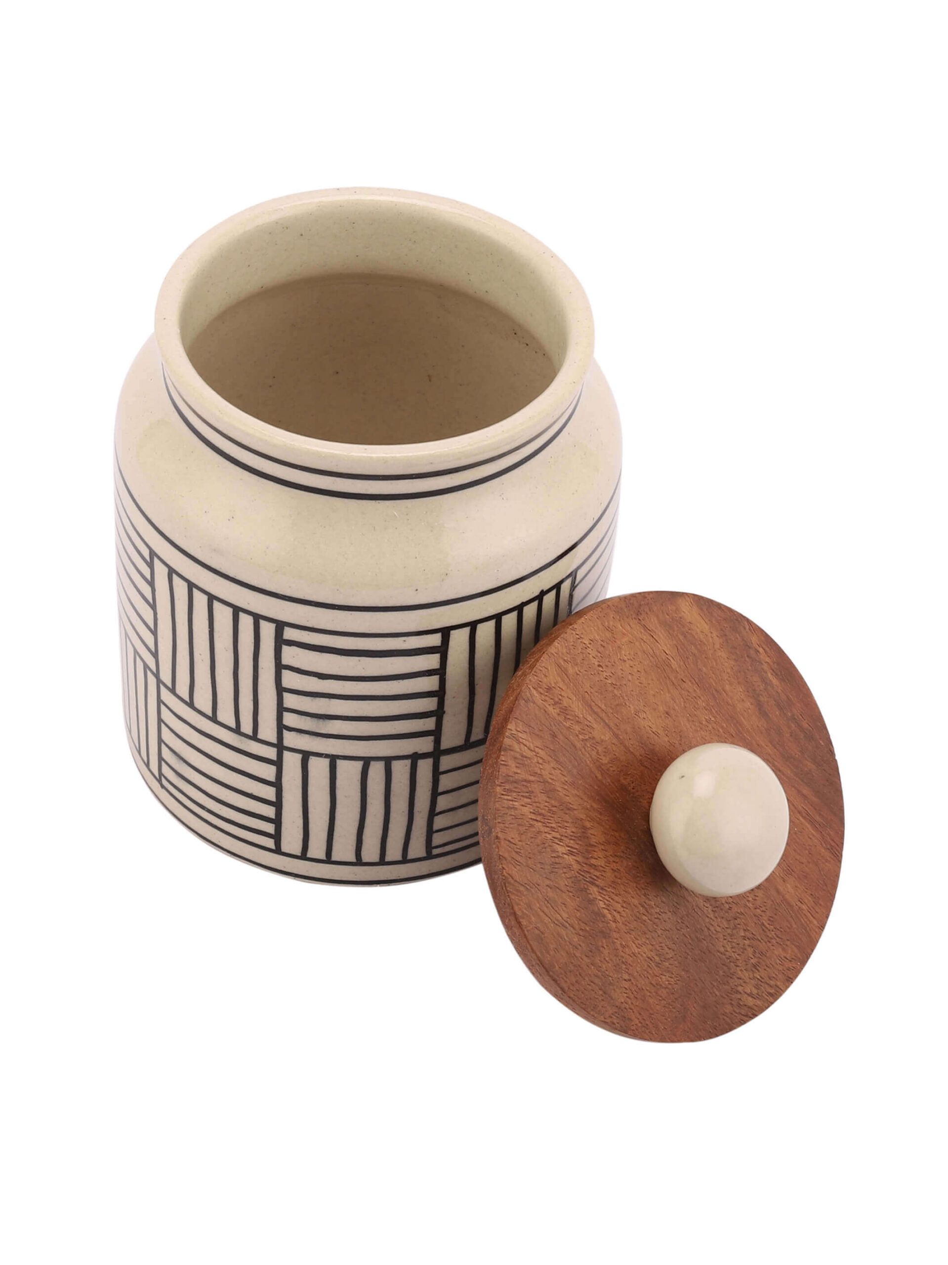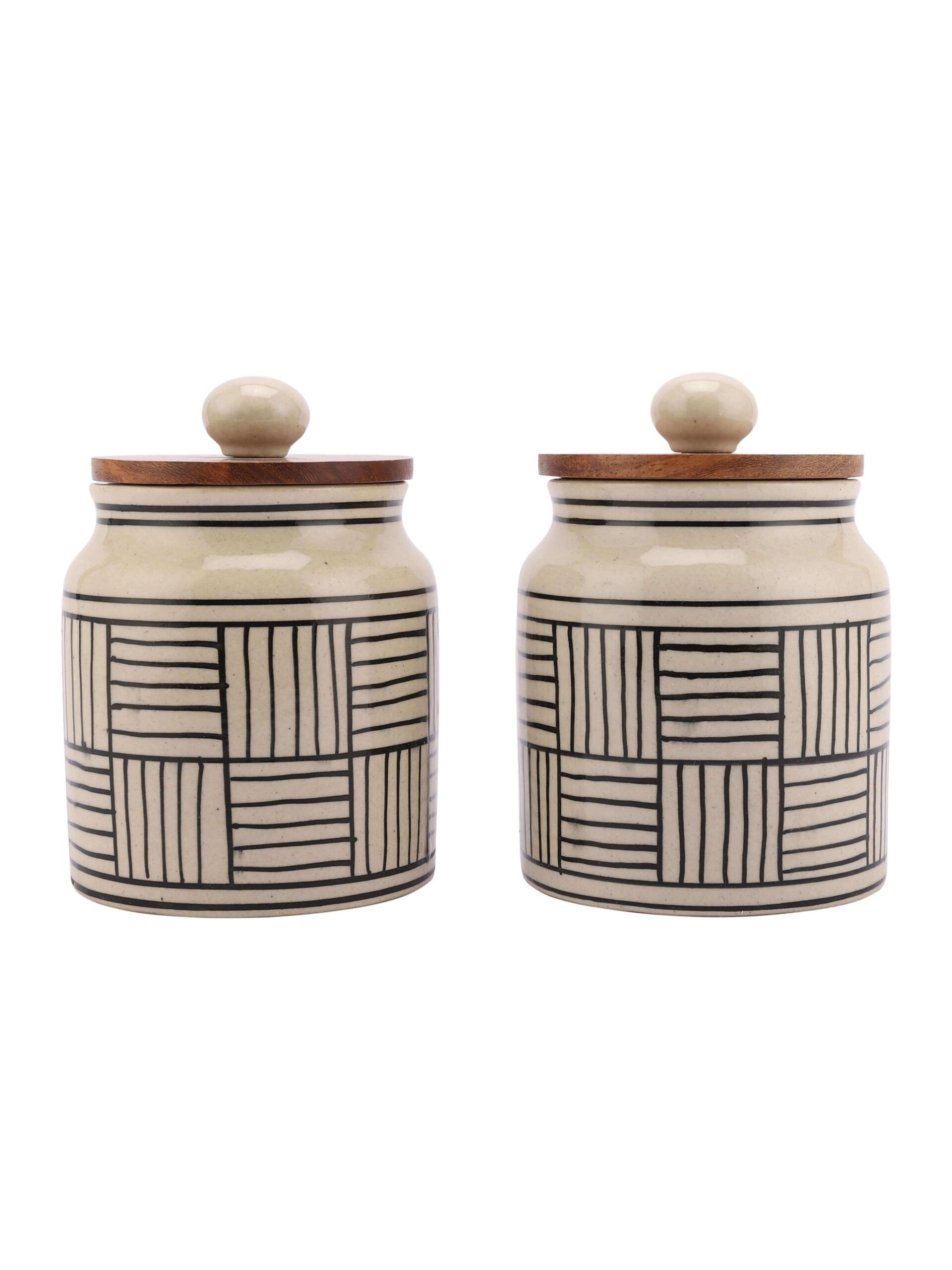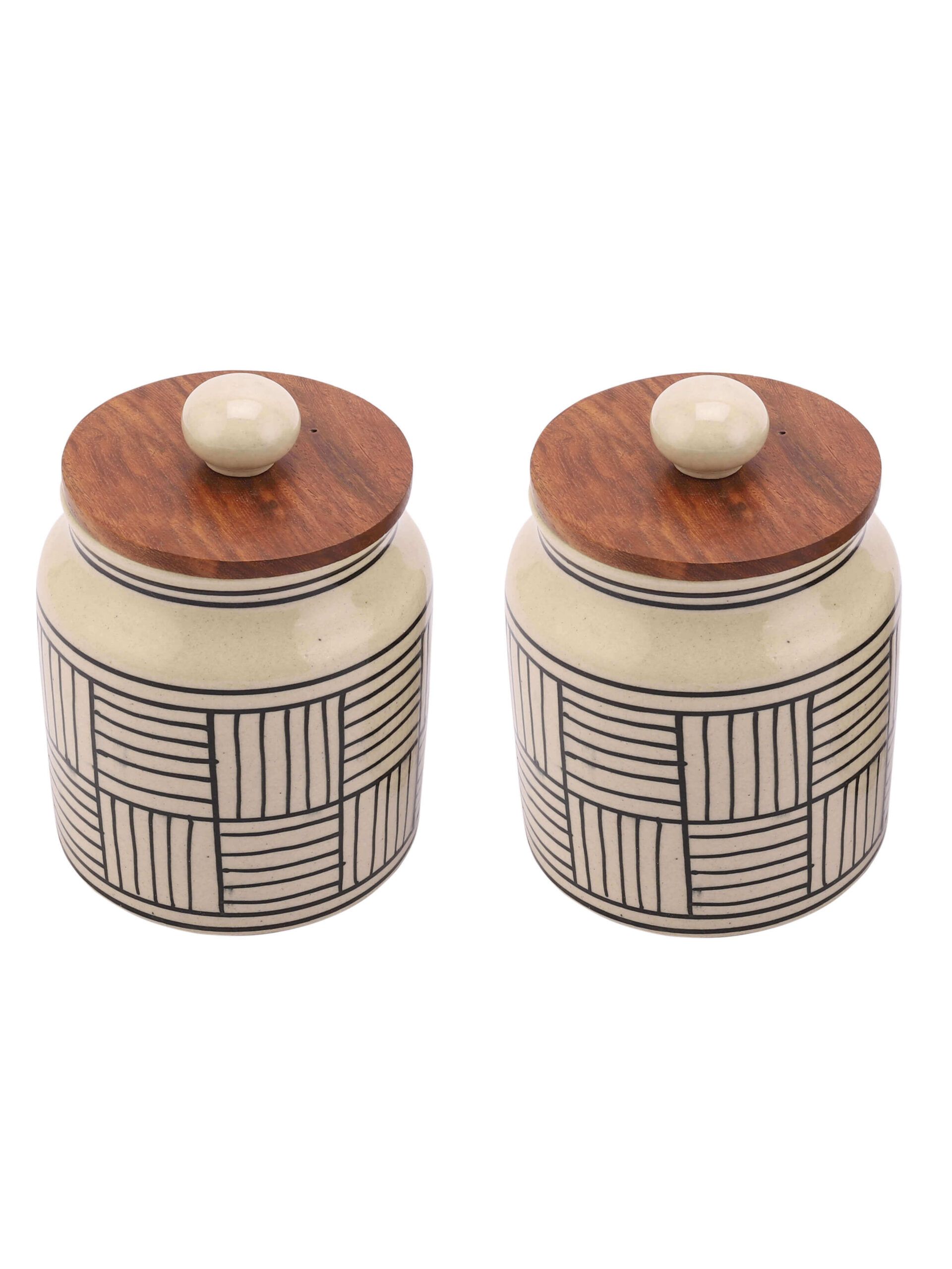 Brighten your kitchen shelf with this set of 2 hand-painted ceramic jars (460ml each). Designed to store spices, dry snacks, and more, each jar features a tight-sealing wooden lid. Perfect for households that value both utility and handcrafted elegance.
