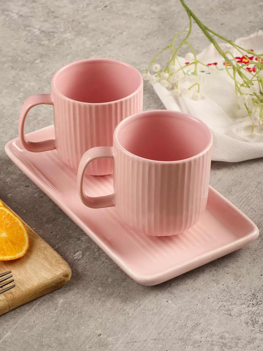 MIAH Décor Handcrafted Serving Platter (9.5×3.5) with 2 Mugs