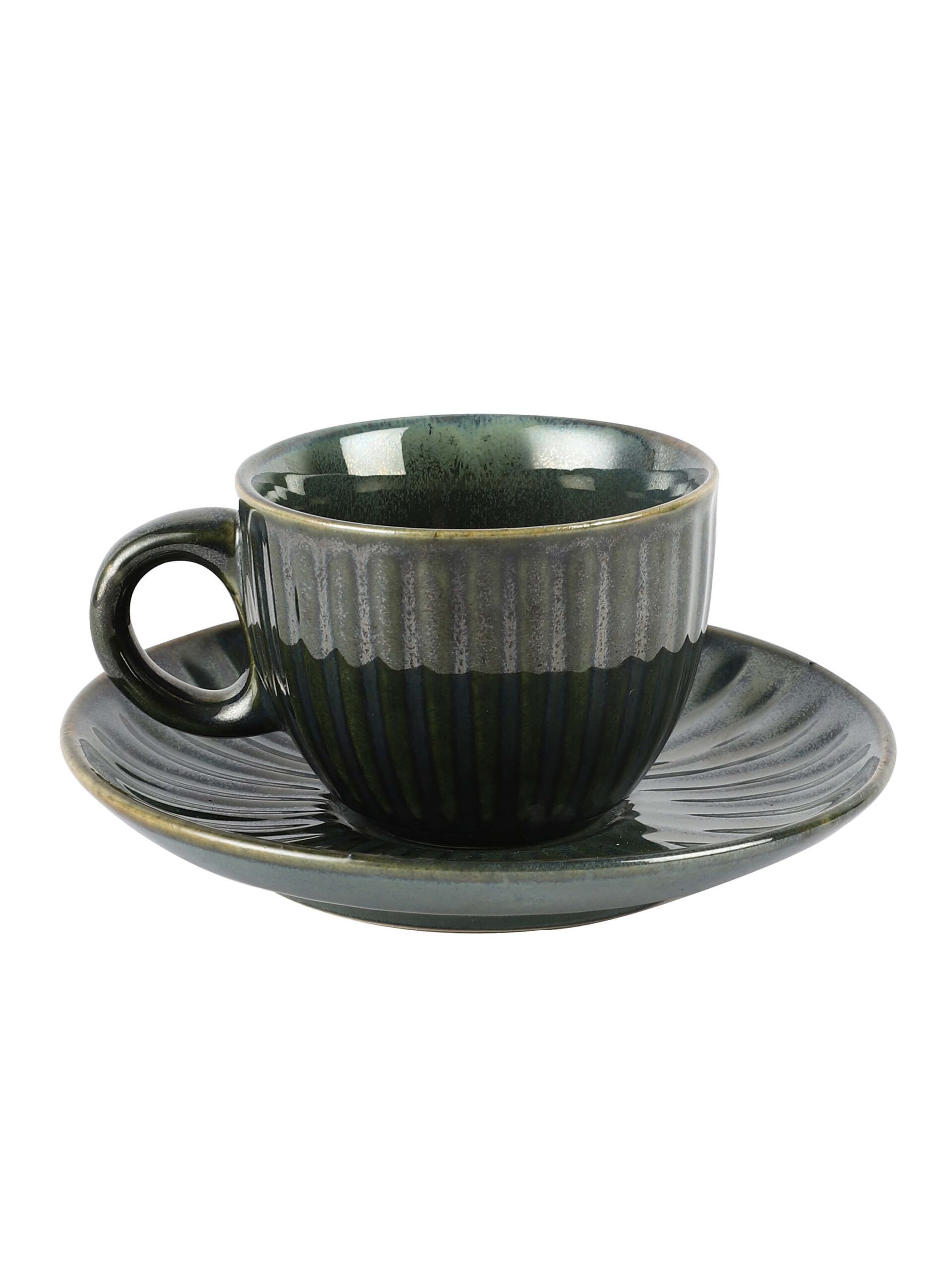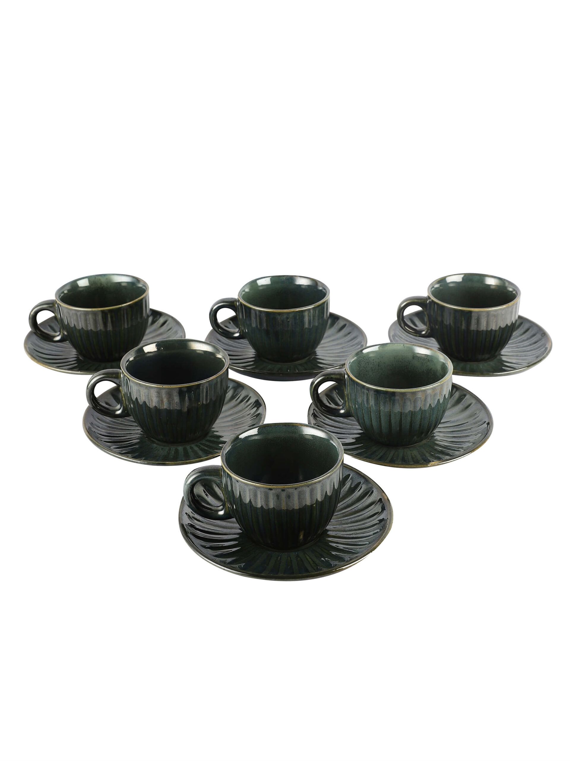 Miah Décor Pine Green Hand Glazed Studio Pottery Ceramic Tea Cups & Saucers Set (Set of 6)- Cup Set for Tea of 6 Tea Set Tea Coffee Cups Mugs Set