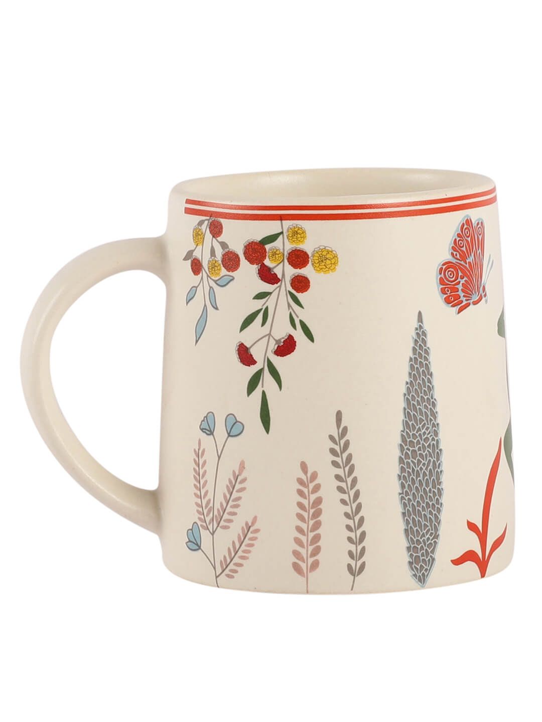 MIAH Decor White Red 2 Pieces Floral Printed Ceramic Matte Mugs-300ml Each