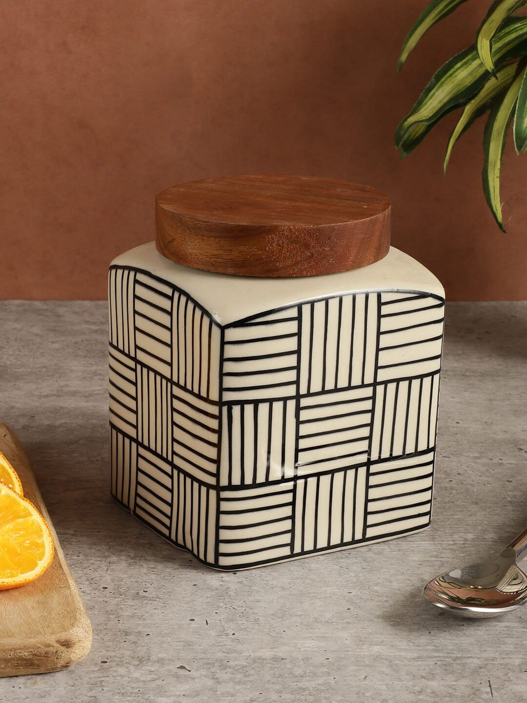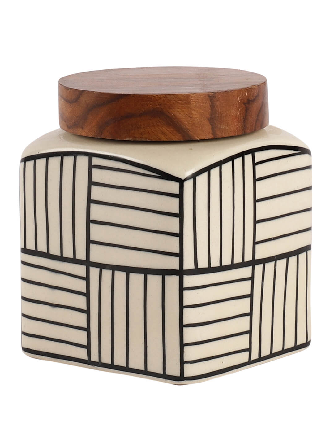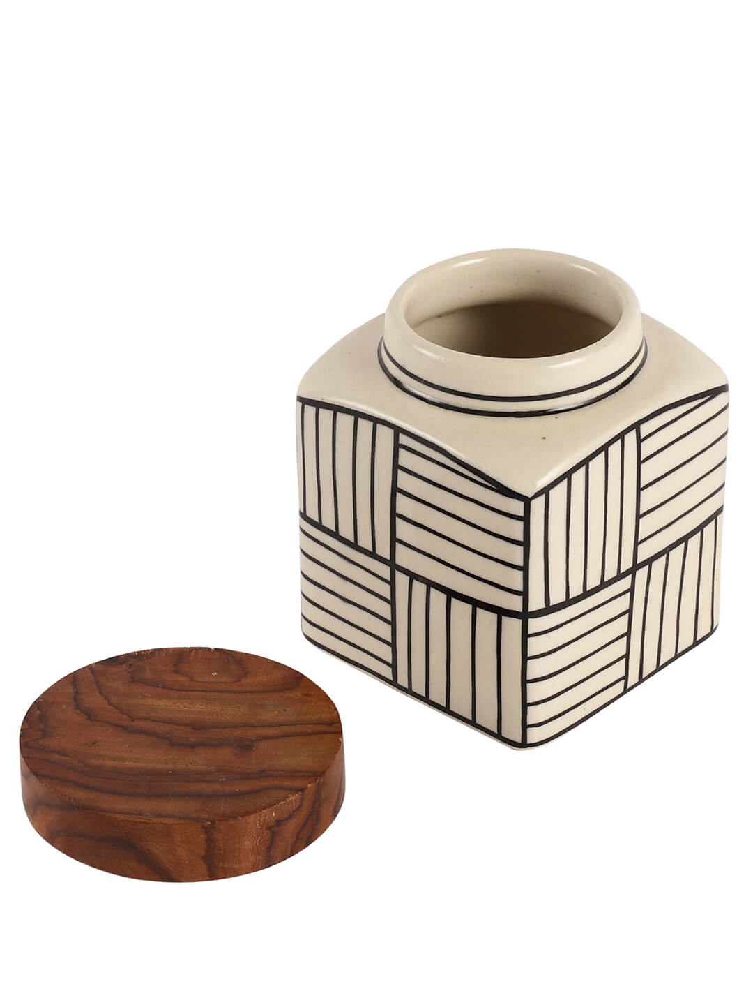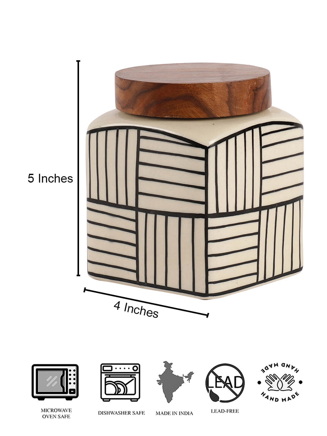 780ml premium ceramic jar with handpainted design. Airtight wooden lid. Store tea, sugar, pickles, coffee in style.